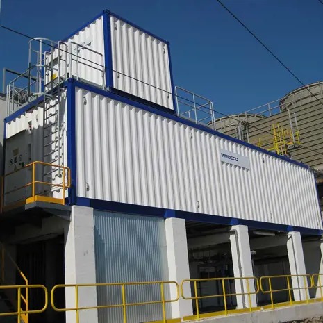 Wedeco engineers have worked closely with pulp and paper manufacturers around the world to understand their specific ozone system requirements. The result is the Z-Compact ozone system, a containerized solution that has been engineered to meet the needs of the pulp and paper market. Unlike a traditional ozone generation system, comprised of only the generator and power supply unit, the Z-Compact containerized unit includes, and houses, the ozone generator and power supply unit as well as the instrumentation, high voltage transformer, generator PLC, air conditioning and chemical filter systems.